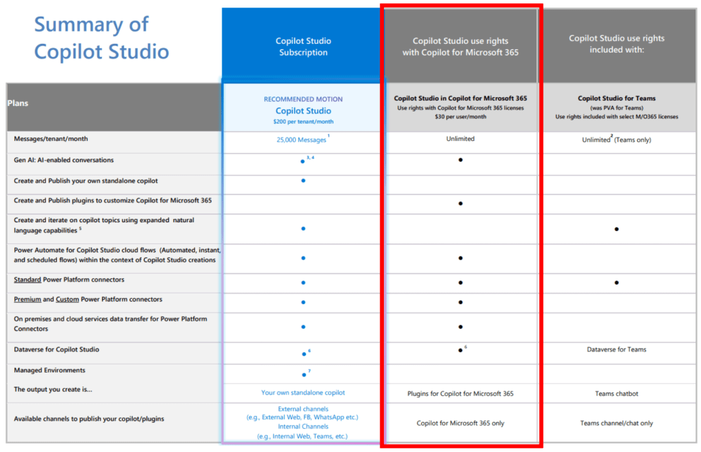 That leaves 2 (Copilot Studio in Copilot for M365 and Microsoft 365 Copilot for SharePoint) that aren’t referenced as part of the Copilot for Microsoft 365 service description. There are separate section to address these.